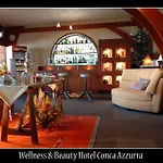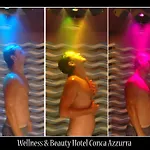 Il Conca Azzurra Wellness & Beauty Hotel dispone di 26 camere che comprendono un balcone e un salottino. Offrono inoltre una TV a schermo piatto con canali satellitari e un mini bar e servizi per la preparazione di tè/caffè. Per il comfort degli ospiti sono presenti la possibilità di stirare e un impianto di climatizzazione.